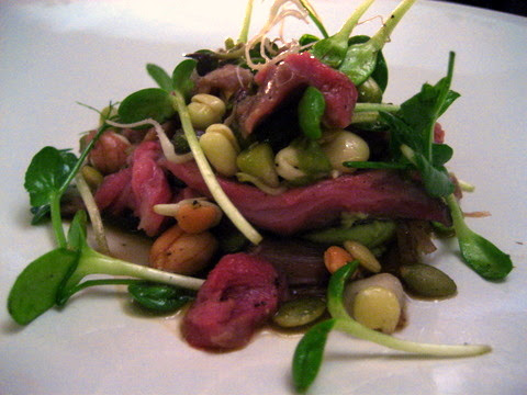 This dish had a wildness about it, the raw sprouts and crunchy nuts heightened the natural savoriness of the goat. I expected loads of gaminess but the meat was fairly mild. With two different preparations of goat, one braised, the other seared rare, each with their own flavor and texture. The wheatgrass puree was largely unnecessary but didn't detract from the dish either.